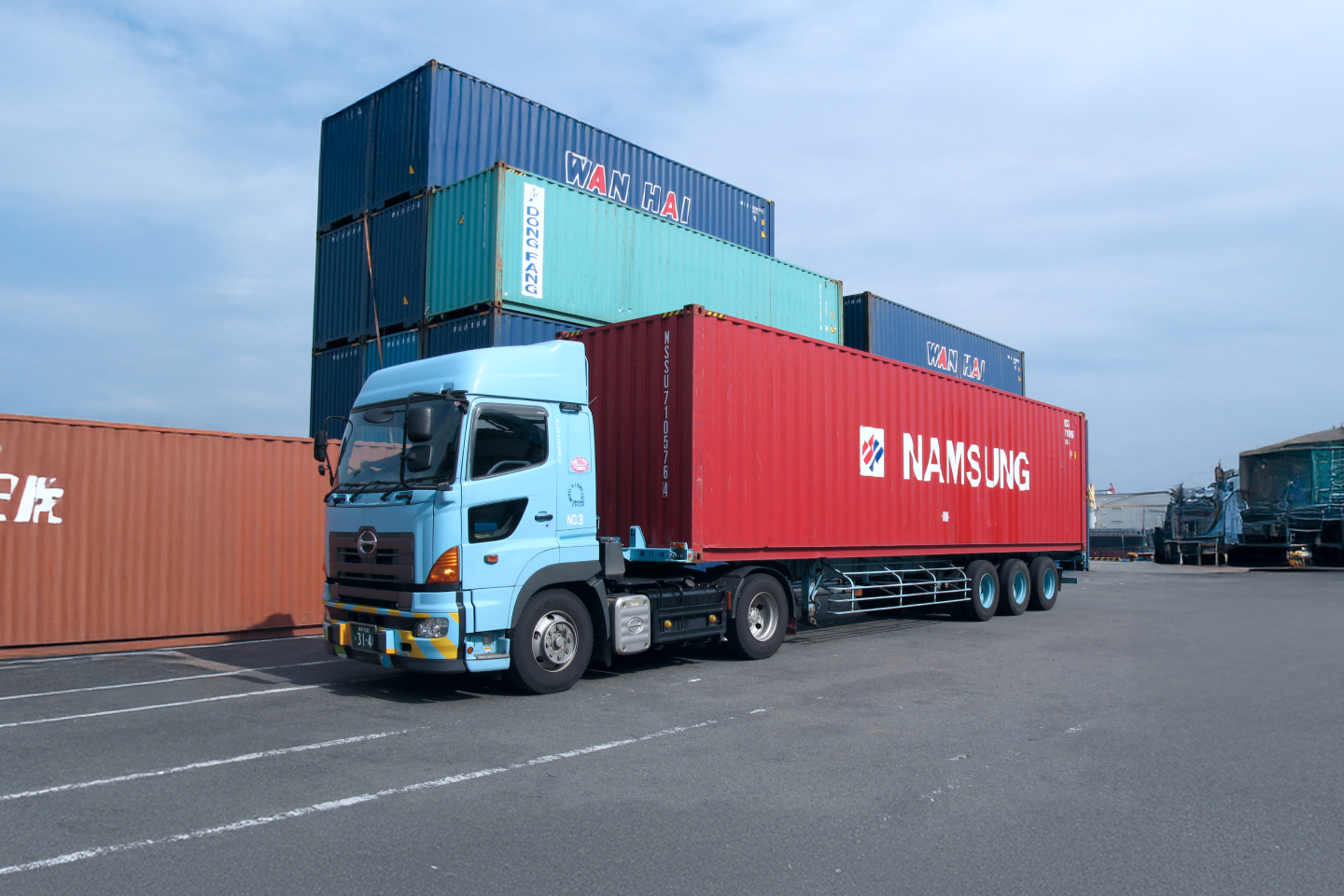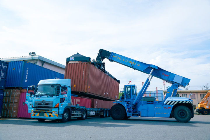 コンテナ専用トラックヘッドや各種シャーシを自社で保有し、配車やスケジュール調整の自由度を実現しています。自社ターミナルではリーチスタッカーによるバン詰め・バン出しも可能なので、重量コンテナや危険物、リーファーコンテナなどの特殊貨物にも迅速かつ効率的に対応可能です。急な納期変更や緊急輸送にも即応し、トラブルなどの予期せぬ状況下においても、お客様のビジネスを支える安心感が評価されています。