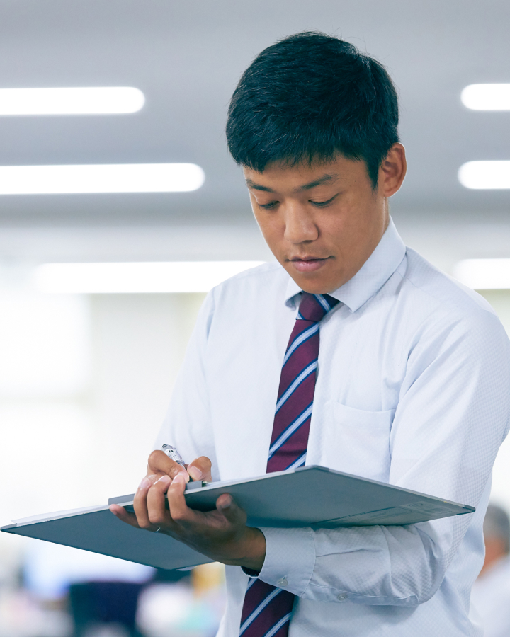 また、困ったときは、気軽に相談できる環境が整っているのも、ありがたいですね。努力をしっかり評価してもらえるので、こうして7年目で課長代理に昇進できたのも、周囲のサポートと会社の体制のおかげだと思います。